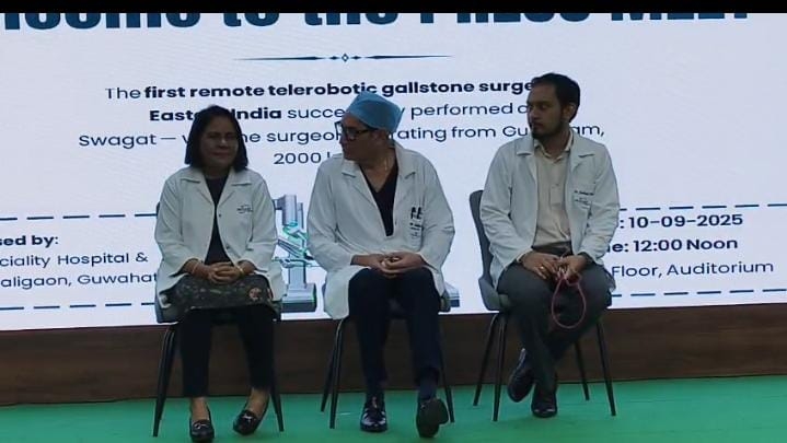 Swagat Super Speciality Hospital, Guwahati, has created history by performing the first remote robotic gallbladder removal surgery in Eastern and Northeastern India. Two patients in Guwahati underwent the operation using the Made-in-India SSI Mantra Robotic System, while the lead surgeon, Prof. Subhash Khanna, controlled the robot from Gurgaon, nearly 1,950 kilometers away, to perform the surgery. Both patients are recovering well and are ready to be discharged within 24 hours.